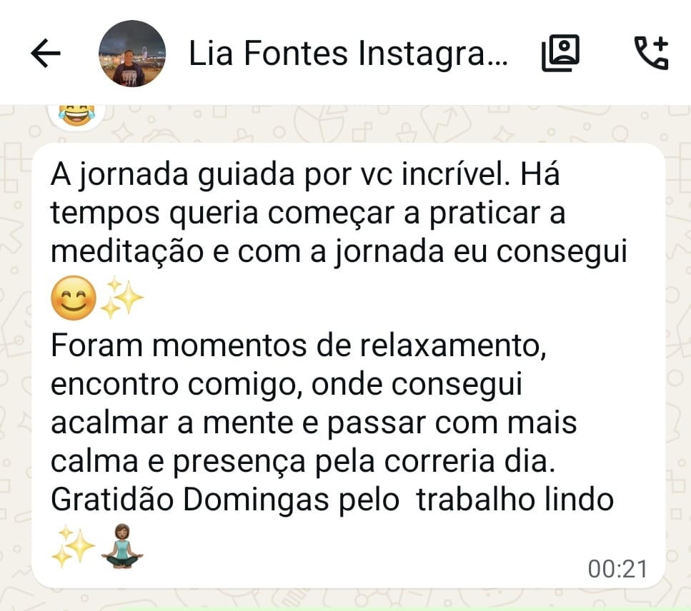 1 Meditação Guiada por dia, de 15 minutos de duração, via WhatsApp.